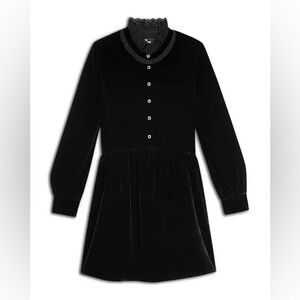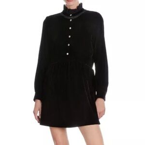 The Kooples Short Black Velvet Dress with Bijou Buttons.
