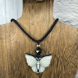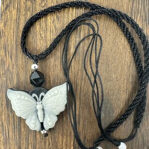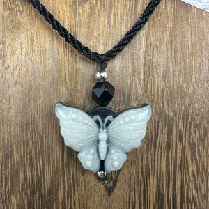 Tai Chi Stone Butterfly Pendant Necklace on Adjustable Black Rope