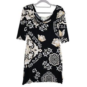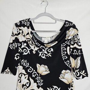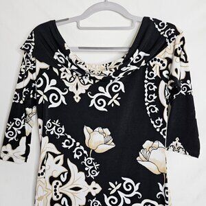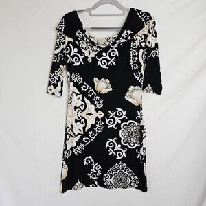 WHITE HOUSE BLACK MARKET Dress BLACK TAN WHITE FLORAL size XS Summer Chic Preppy