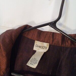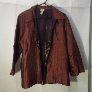 Chico's Open Front Shirt Jacket Women 3 XL 3/4 Sleeve Shimmer Red Black