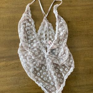 Victoria's Secret Floral Lace Bodysuit in soft pink
