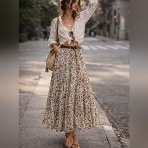 Embrace a bohemian vibe with this floral maxi skirt. Perfect for casual outings, it features a beautiful blend of colors that add a touch of elegance to your wardrobe.