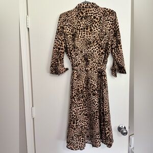 Chic long sleeve dress with a bold leopard pattern. Designed by Calvin Klein for a stylish look.