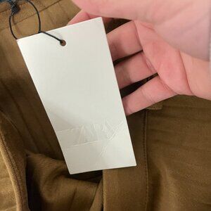 Zara Womens Pleated Faux Suede Midi Skirt L Large Light Brown 9596/974 NWT