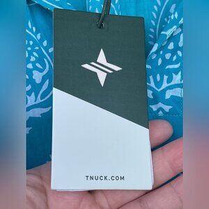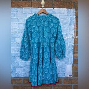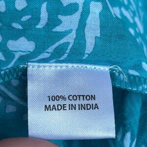 TUCKERNUCK Tropical Teal Lantern Block Print Tie Neck Coverup Dress Size Medium