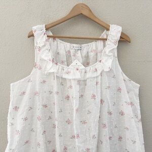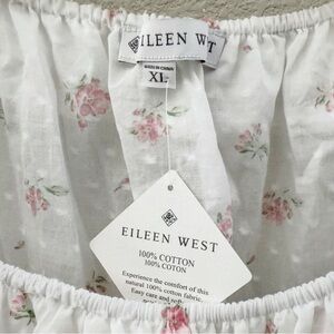Eileen West Elizabeth Short Nightgown XL White Pink Floral Cotton Swiss Dot NWT
