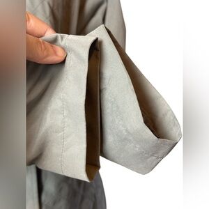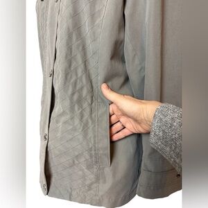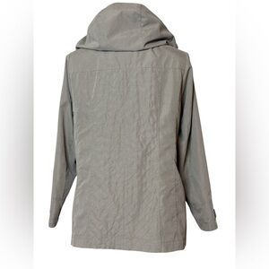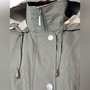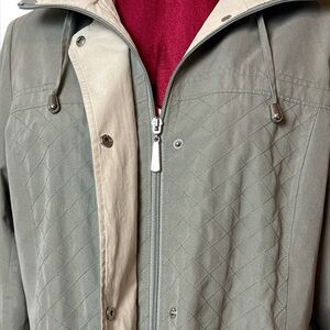 Semi-fitted, front pockets, fully lined with lightweight lining (not thermal), decorative topstitching gives the appearance of quilting, silver hardware removable hood, soft to the touch with a mock-suede feel, easy care machine washable, branded hardware.