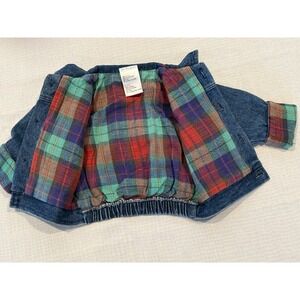 Absolutely adorable vintage Peanuts embroidered denim jacket with embroidered Peanuts graphic on the back k and embroidered snoopy on chest. Cute flannel cuffs. Size 6-9 months, button closure