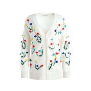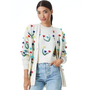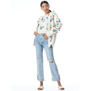 Alice + Olivia Bradford Crochet White Flowers Grandpa Cardigan Large