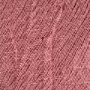 Casual pink tee with a scoop neck. Features a front pocket. Perfect for everyday wear. some snag on front/pictured