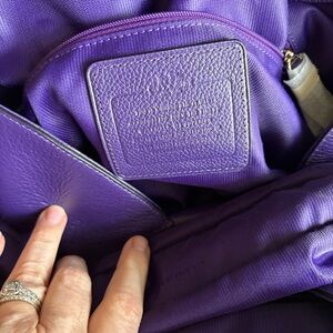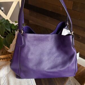 Sophisticated Coach shoulder bag in deep purple. Sleek design with signature logo. Ideal for everyday elegance. Plastic still on the hang inside is embossed with “coach” Very nice beautiful bag. Please see all photos as it is part of the description dimensions are in pics! She has gold hardware very beautiful bag. Price is firm she is beautiful 💜