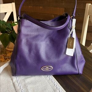 Coach Edie 31 Purple Pebble leather Bag with Gold Hardware & Hang tag NWT