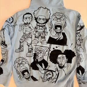 Step into Woodcrest style with the Gold Winners Outline Blue Hoodie — a bold celebration of The Boondocks' most iconic moments. Featuring a full all-over print of your favorite characters, this hoodie blends streetwear edge with premium comfort. The flocking detail gives each outline an elevated texture, making the artwork stand out while keeping it true to The Boondocks' gritty, unapologetic vibe. Whether you're keeping it low-key or making moves, this hoodie turns heads while repping the culture.