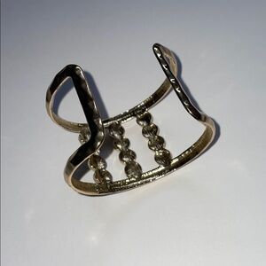 NWOT Elegant adjustable gold cuff bracelet featuring striking turquoise stones. Perfect for adding a touch of sophistication to any outfit. This cough bracelet is gold plated with multiple round turquoise stones. This is a Boho style open cuff with hammered/dimple texture on the bands. The open back design allows for an adjustable fit to various wrist sizes. 2” wide. Smoke & pet free home.