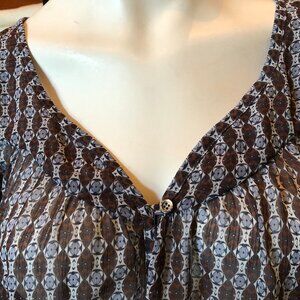 CLASS Boho inspired Peasant Top Brown/Blue Sz M