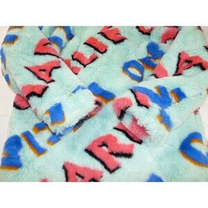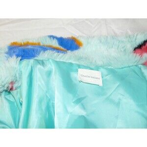 Charlie Luciano Milano Rare Limited Teal Blue Fuzzy Allover Print Snap Jacket