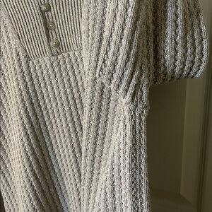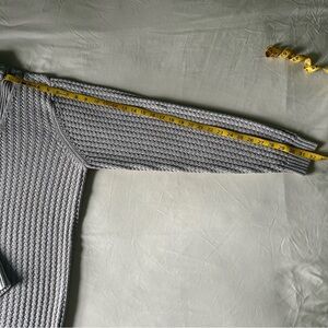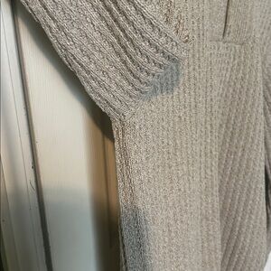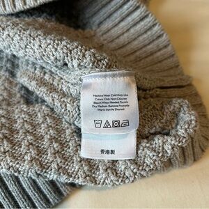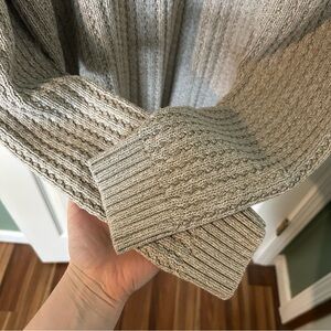 • Soft, neutral heathered cream/grey oatmeal knit with structured ribbed texture throughout