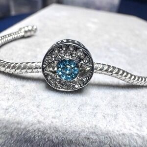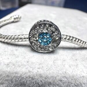 Tone Evil Eye Charm Blue Crystal Charm Bracelet fits PANDORA