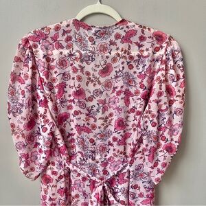 Torrid Kimono Women's 1 1X Pink Floral Midi Swim Cover Up Feminine Whimsical