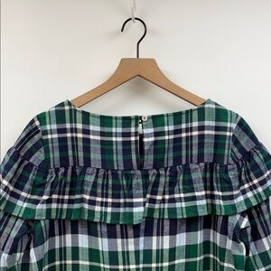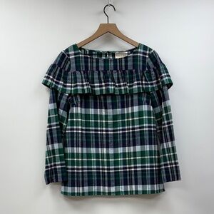 NWT Tuckernuck Sail to Sable Tartan Plaid Ruffle Blouse Preppy Navy Medium