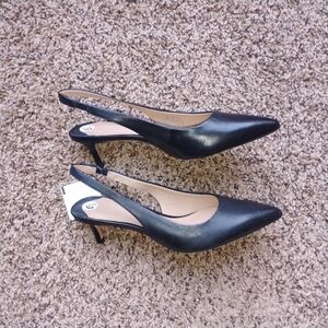 NWOB Lauren Ralph Lauren Lolah Black Leather Slingback Kitten Heel Pointed Toe