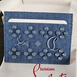 Christian Louboutin Denim Blue Studded Card Holder NIB