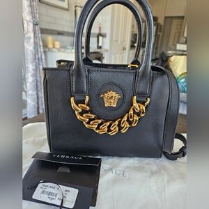 Denim blue card holder with signature studs. Features iconic logo design. Full inclusion NIB!