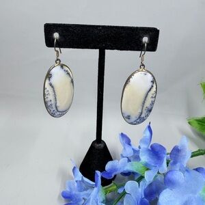 Dendritic Opal Vintage 925 Sterling Silver Drop Earrings