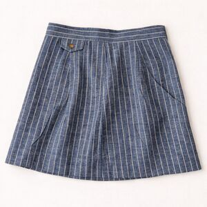 Y2K J.Crew striped mini skirt, preppy, classic. Soft cotton, side pleats, pockets, and a flattering A-line shape. 50/50 Linen/Cotton Blend, unlined, Size 00