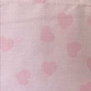 Charming queen sheet set with pink heart design. Includes fitted sheet, flat sheet, and two pillowcases.