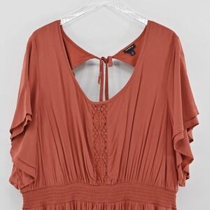 TORRID Dress Size 4X Challis Rust Embroidered Smocked Waist Flutter Short Sleeve