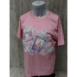 MWT Jantzen Short Sleeve Women's Pink T-shirt Flowers Postcard Size Large.