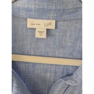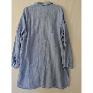 J. Jill Love Linen Tunic Shirt Womens XL Blue Button Down Long Sleeve Slit Hem