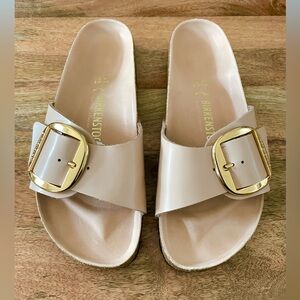 NEW Birkenstock Madrid Big Buckle Leather Size 41 In New Beige Gold
