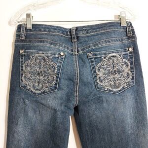 Nine West Vintage America Blue Embroidered Bling Rand Crop Jeans Size 8P /29