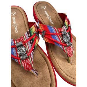 Minnetonka Red Leather Beaded Sandals Flip Flops Thongs 7M Womens Wedge Heel