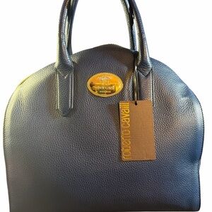 NWT Roberto Cavalli Firenze Blue Pebbled Leather Dome Satchel Bag