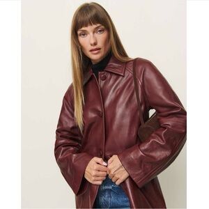 Reformation x Veda Beck Leather Trench in Chianti Burgundy dark red colorway, size medium! NWT!