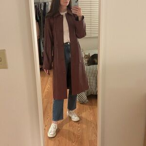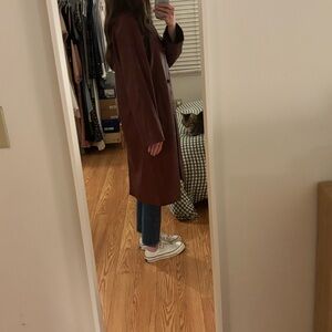 Reformation x Veda Beck Leather Trench in Chianti Burgundy, size medium!