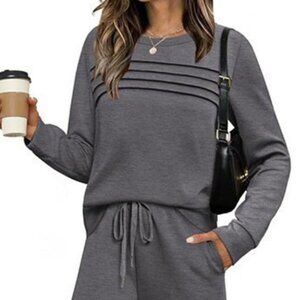 Heather Full Size Long Sleeve Round Neck Top and Pants Set Plus Size