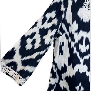 Jones New York Signature Navy Blue White 100% Linen Embroidered Tunic Top Size M