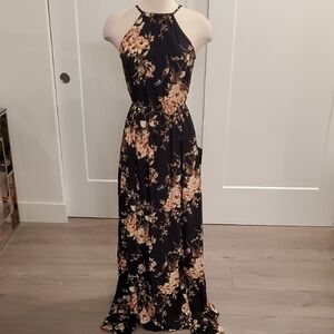 Lulu's Black& Dusty Rose Floral Maxi Dress Size S new with tags