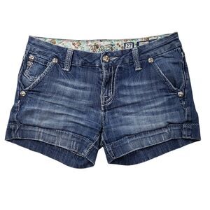 Miss Me Jean Shorts Womens 27 Low Rise Cross Embellished Bling Y2K Denim