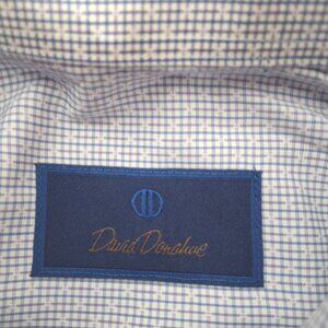 David Donahue luxury dress shirt in a blue micro check pattern.