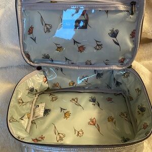Stylish quilted design. Clear top section. Durable zippers.