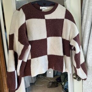 Forever 21 Brown and Cream Checkered Sweater