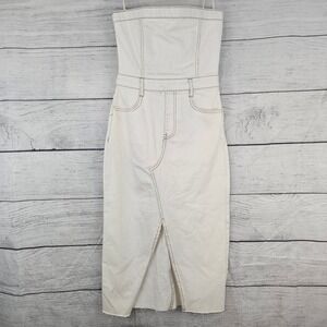 GB Gianni Bini S Small Strapless Denim Midi Jean Dress Off-White Slit NWT L797