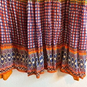 The Anthropologie Aelyn BeadedMaxi Dress by TANVI KEDIA in size 8 is a stylish and versatile piece for women. This dress features a geometric pattern in a vibrant multicolor palette, with embroidered accents adding a touch of sophistication. The sleeveless design and V-neckline make it perfect for a variety of occasions, from casual outings to parties or even traveling. Made from comfortable rayon material, this long dress is ideal for the warmer seasons of summer, fall, and spring, making it a must-have addition to any wardrobe.