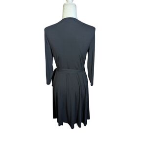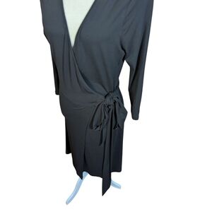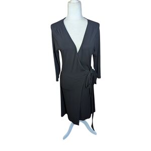 Banana Republic dress, black knit dress, rayon knit dress, side tie dress, wrap style dress, plunging v neck dress, long sleeve dress, cocktail dress, date night dress, office dress, minimalist dress, quiet luxury, classic black dress, sleek dress, modern chic, fitted dress, elegant dress, women’s small dress, versatile dress, soft knit dress office siren career wear professional attire business wear