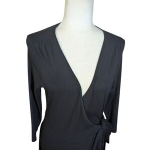 Banana Republic Plunging V-Neck Side Tie Knit Dress – Size Small – Black Rayon Blend
